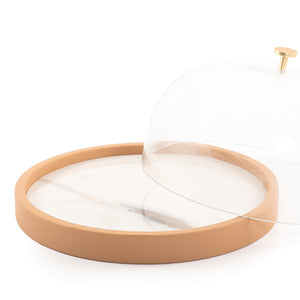 قدمي لضيوفك ألذ الأطباق بشكل يعكس فخامة اختياراتك مع صحن التقديم الجذاب. مصنوع من خامة جلد كما يتميّز بغطاء زجاجي يأتي بتصميم جذاب يجعله الأبرز على طاولة السفرة مما يجعله اختيار مثالي للاقتناء.