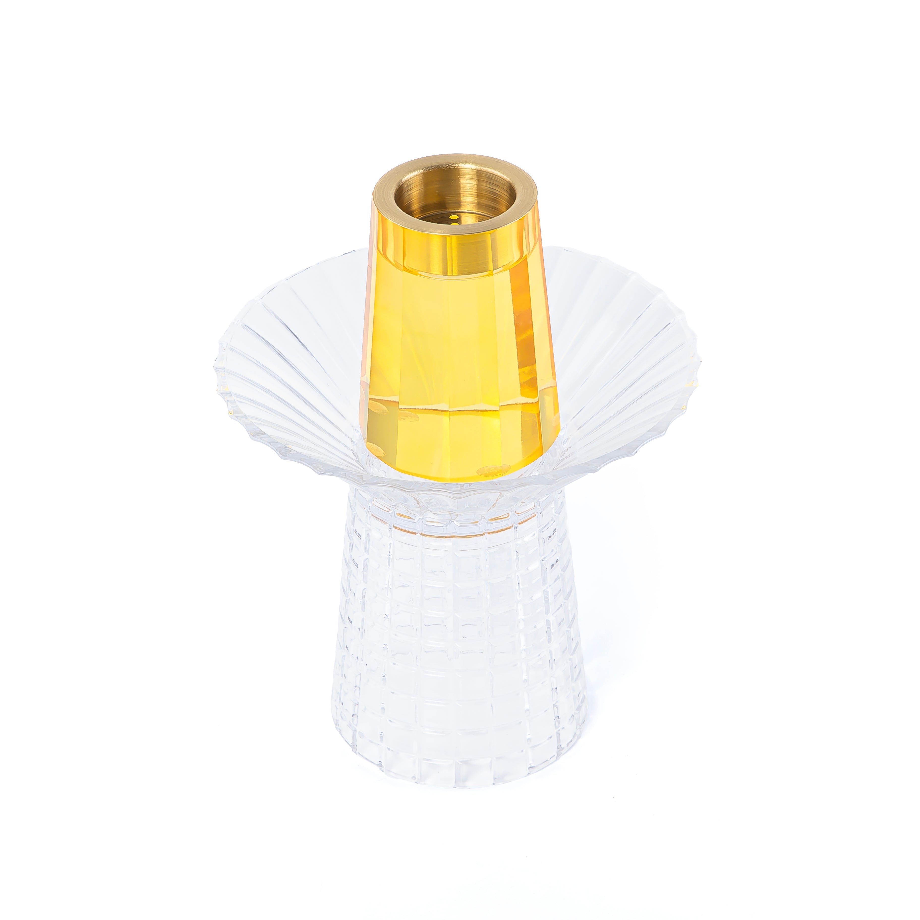 مبخر زجاجي بقاعدة منفصلة مع بوكس هدايا - أصفر