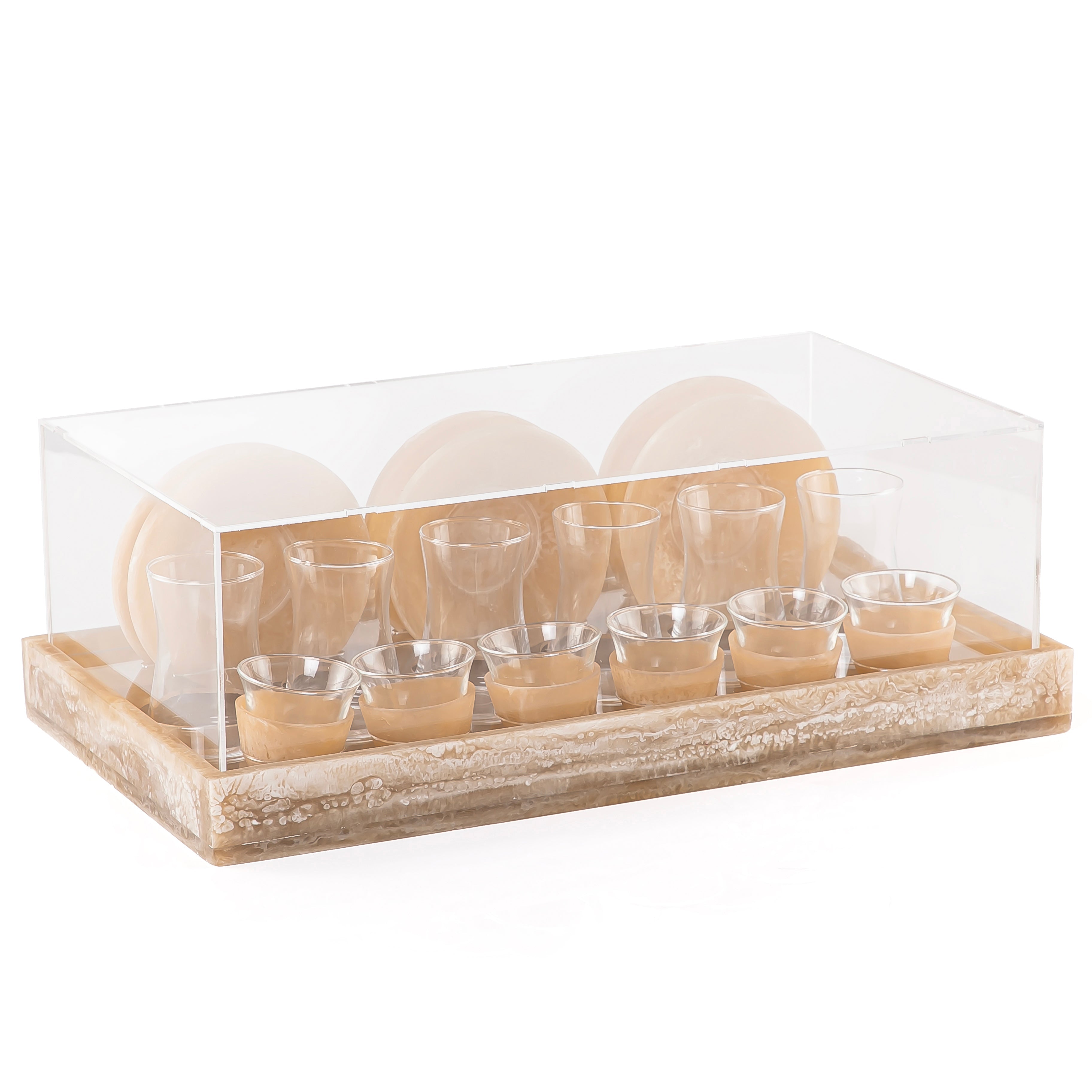 Home طقم مكون من 12 إستيكانات وفناجين قهوة مع الأطباق وبوكس هدايا - أصفر