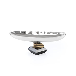 صينية تقديم معدنية بيضاوية أنيقة باللون الفضي والأسود – مقاس وسط
