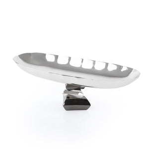 صينية تقديم معدنية بيضاوية أنيقة باللون الفضي والأسود – كبير