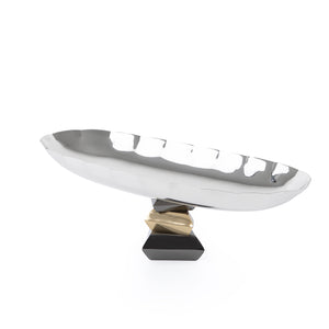 صينية تقديم معدنية بيضاوية أنيقة باللون الفضي والأسود – كبير