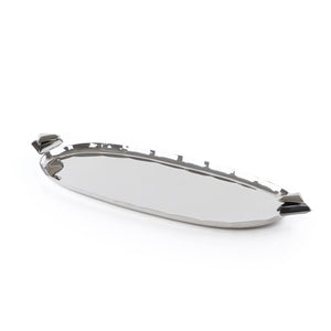 صينية تقديم معدنية بيضاوية باللون الفضي والأسود - كبير