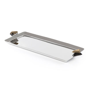 صينية تقديم معدنية مستطيلة باللون الفضي والأسود - كبير