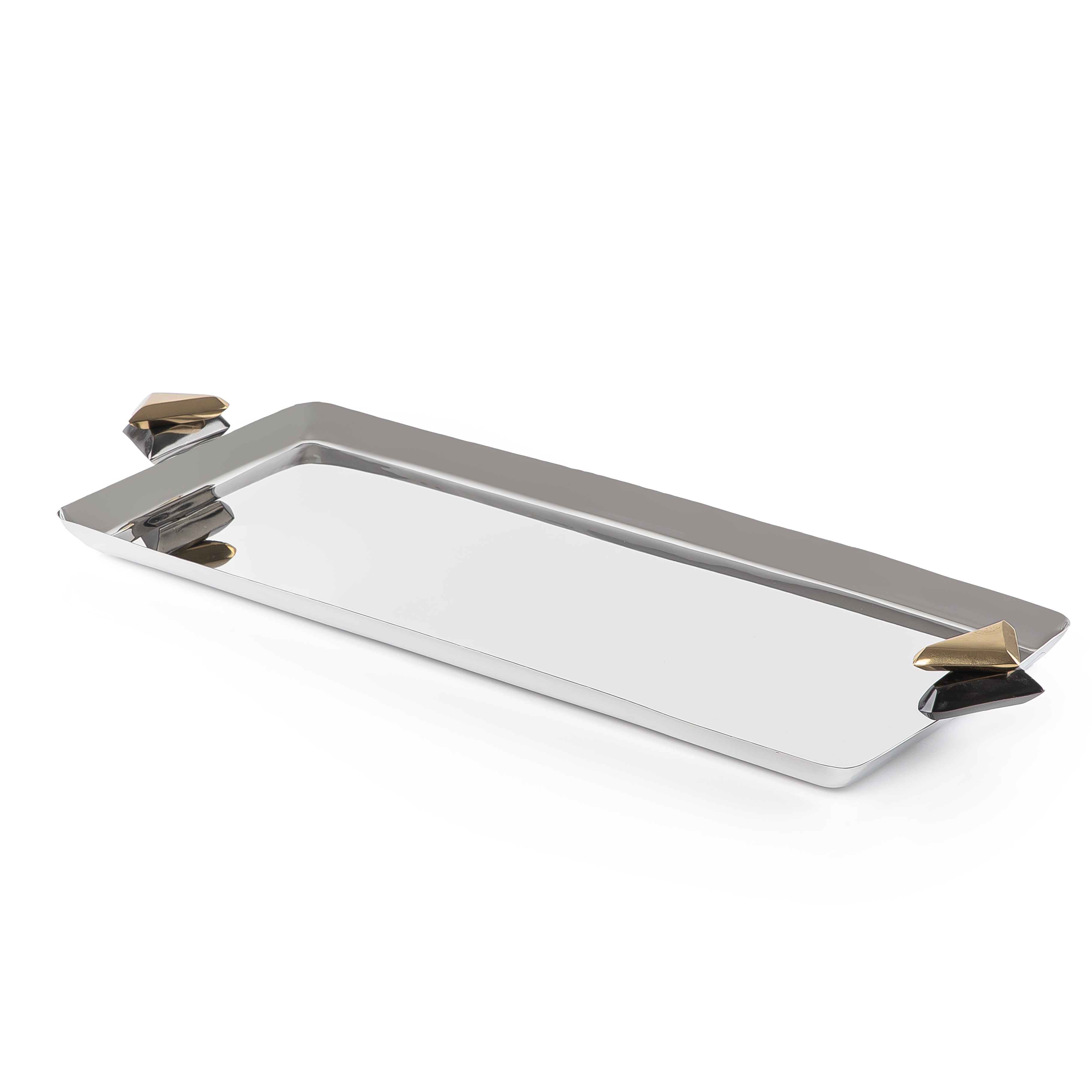 ارتقِ بعرض مائدتك مع هذه الصينية المستطيلة الأنيقة، المصنوعة من معدن متين وبلمسة نهائية جريئة باللونين الأسود والذهبي.