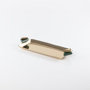صينية تقديم معدنية مستطيلة باللون الذهبي والأخضر - صغير