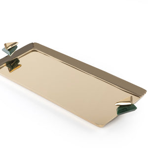 صينية تقديم معدنية مستطيلة باللون الذهبي والأخضر - كبير