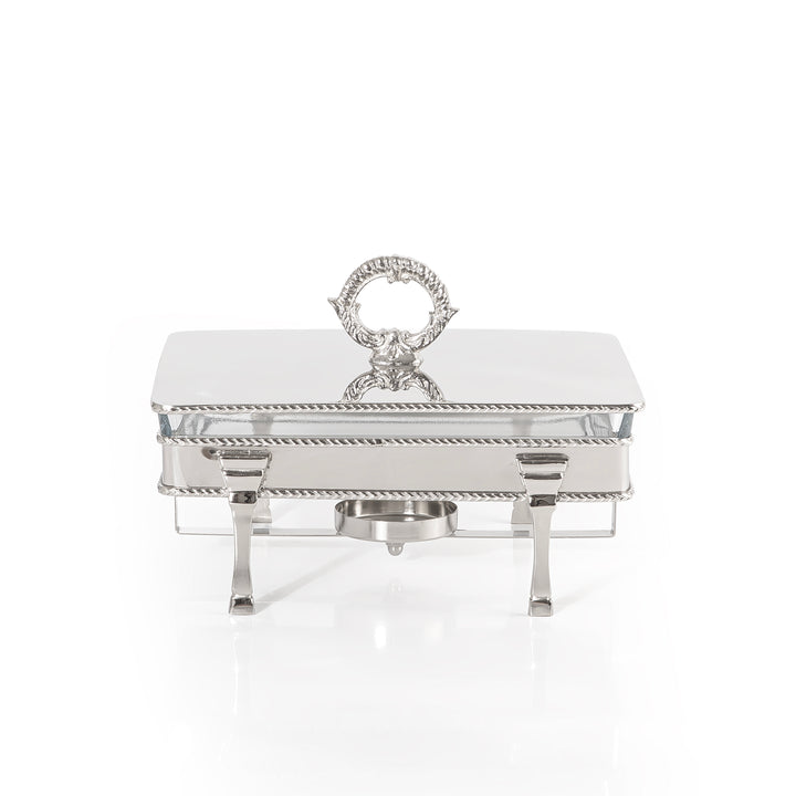 أضف لمسة من الأناقة والعملية إلى مائدتك مع سخان الطعام المستطيل الصغير المصنوع من الستانلس ستيل الفضي، المزود بوعاء زجاجي داخلي قابل للإزالة لسهولة التقديم والتنظيف، ومقبض مريح لتسهيل الحمل والاستخدام.