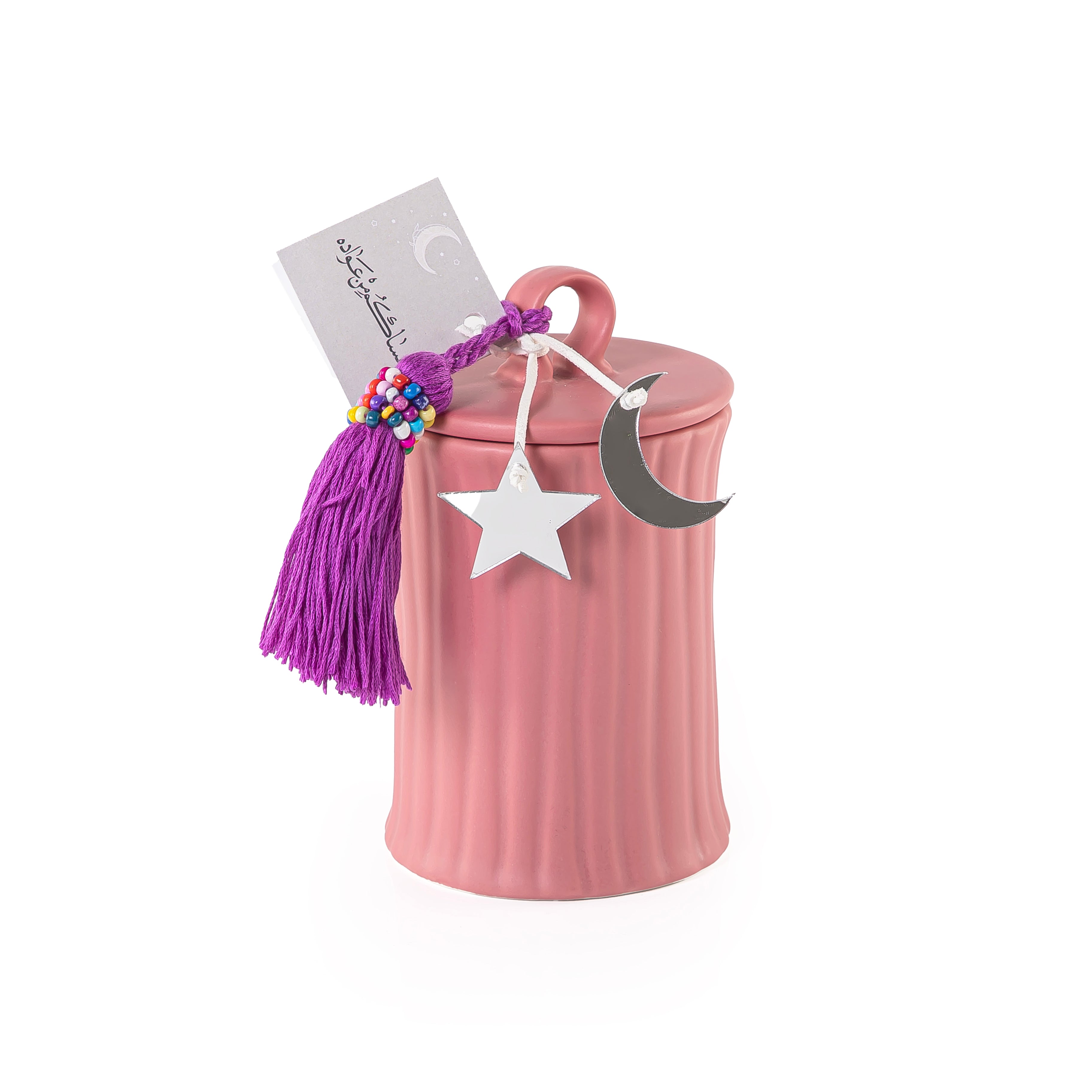 Chose the option: علبة قرقيعان دائرية من الخزف مع غطاء - وردي