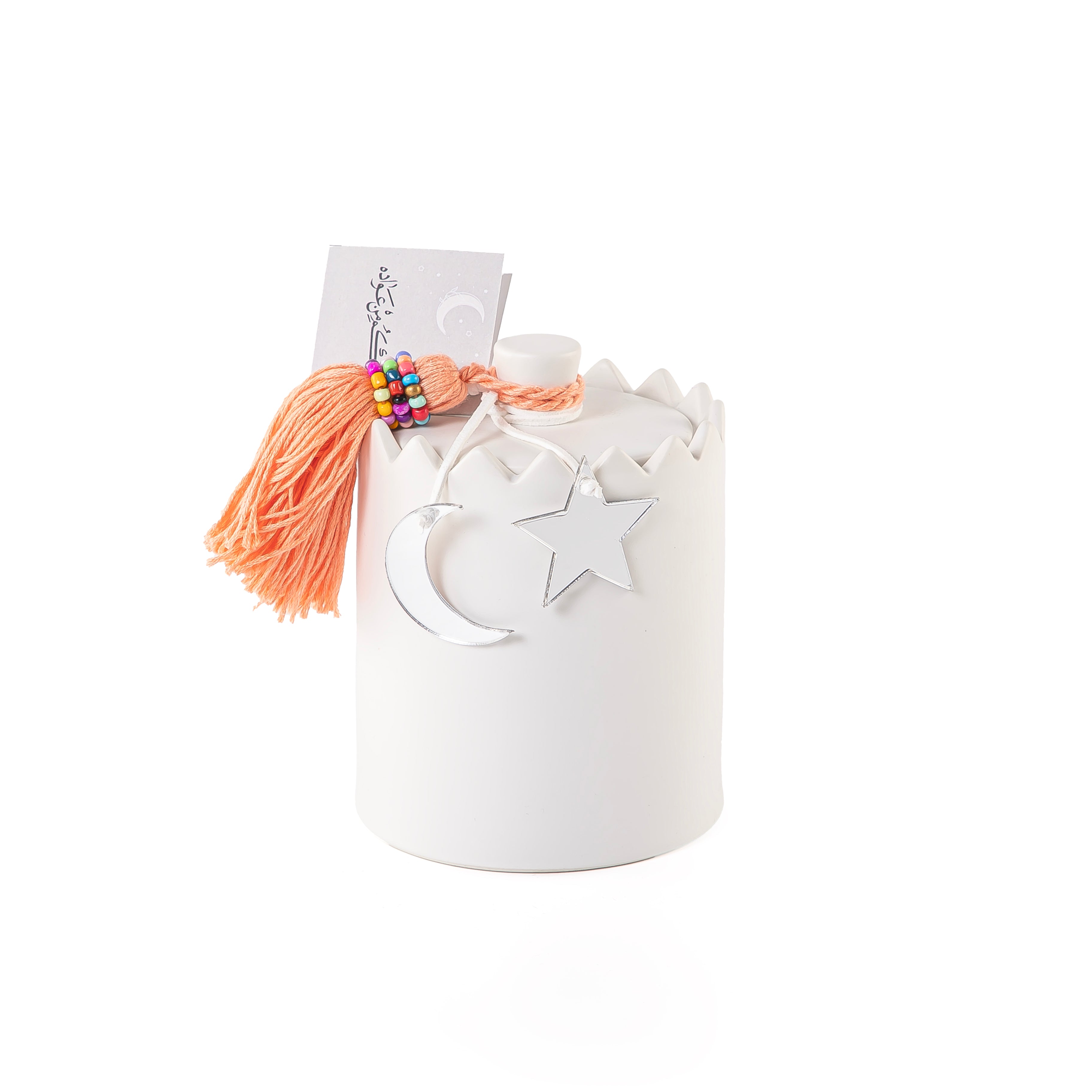 Chose the option: علبة قرقيعان دائرية من الخزف مع غطاء - أبيض