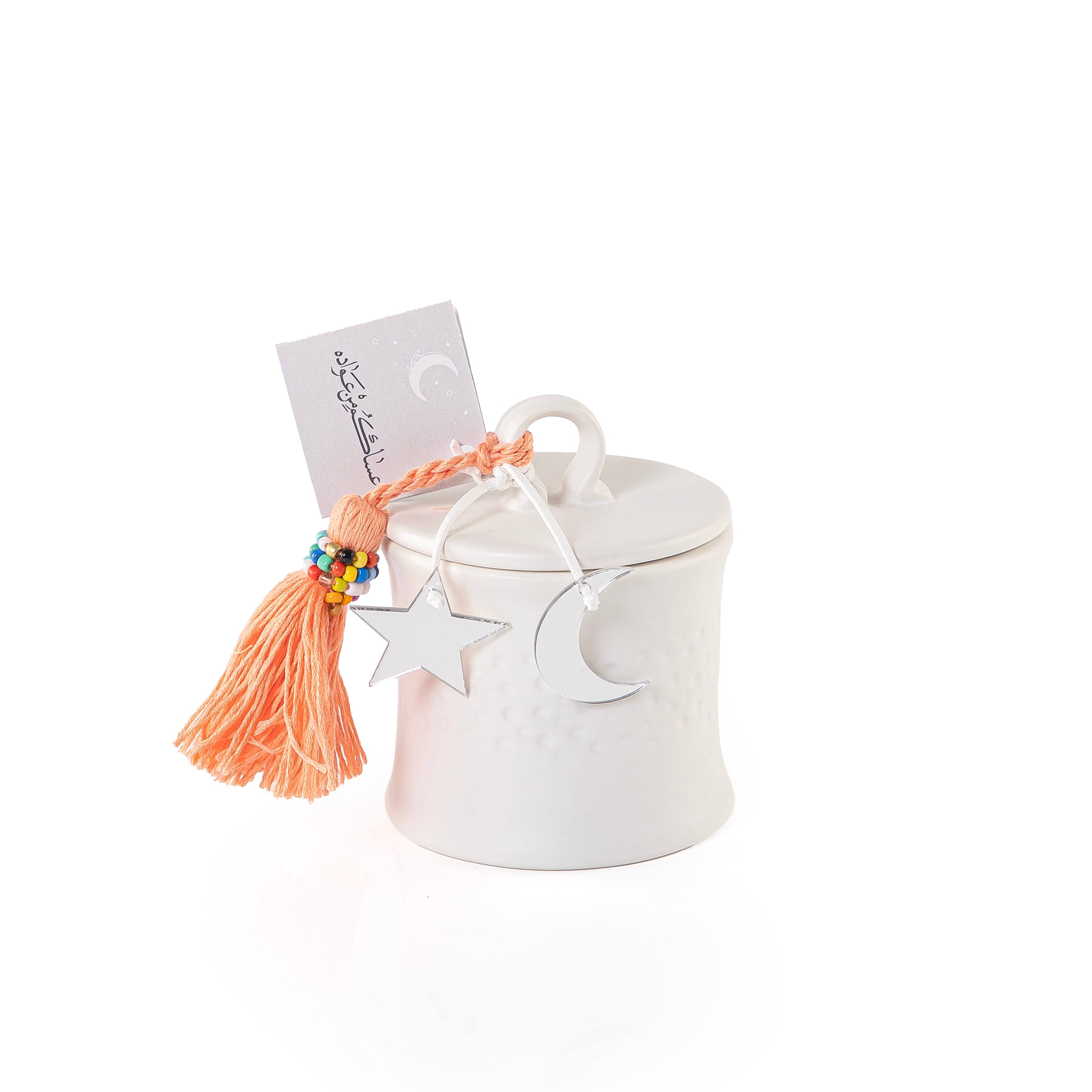 Chose the option: علبة قرقيعان دائرية من الخزف مع غطاء - أبيض