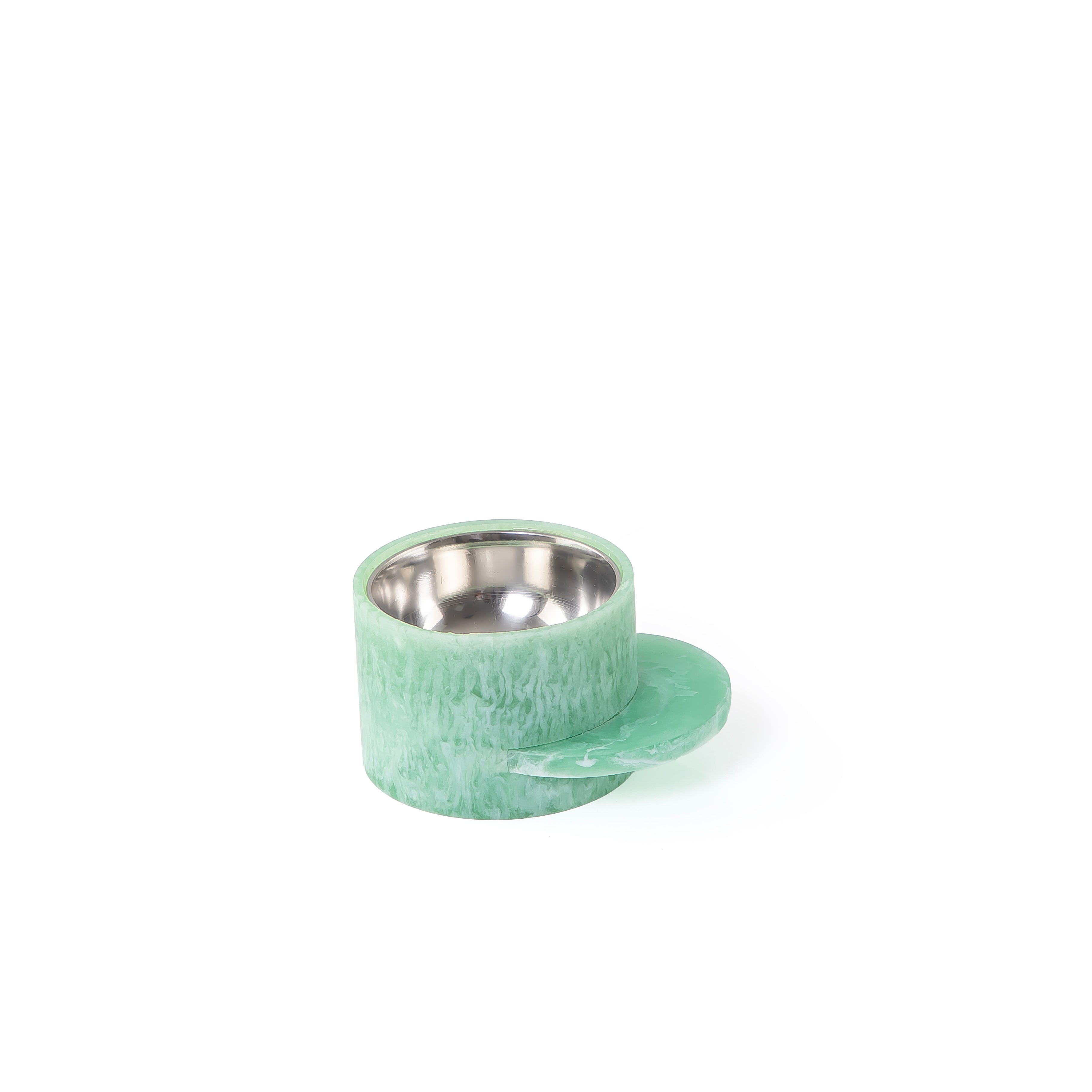 مبخر دائري من الراتان بمقبض - اللون أخضر فاتح رخامي - المقاس: 11×8×5.5 سم