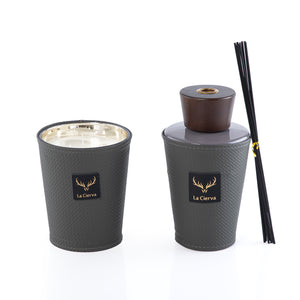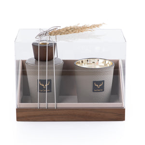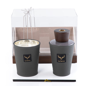 طقم مكون من شمعة و ديفيوزرMarrakesh Oud - رمادي غامق من لاسيرفا مع بوكس اكريليك