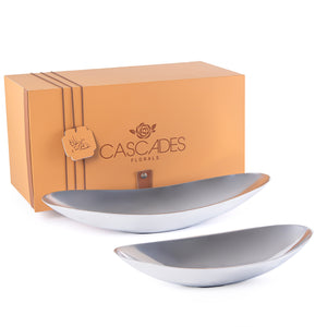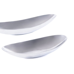 طقم 2 أطباق تقديم بيضاوية من المعدن مع بوكس - فضي