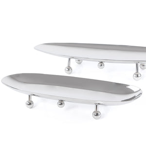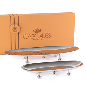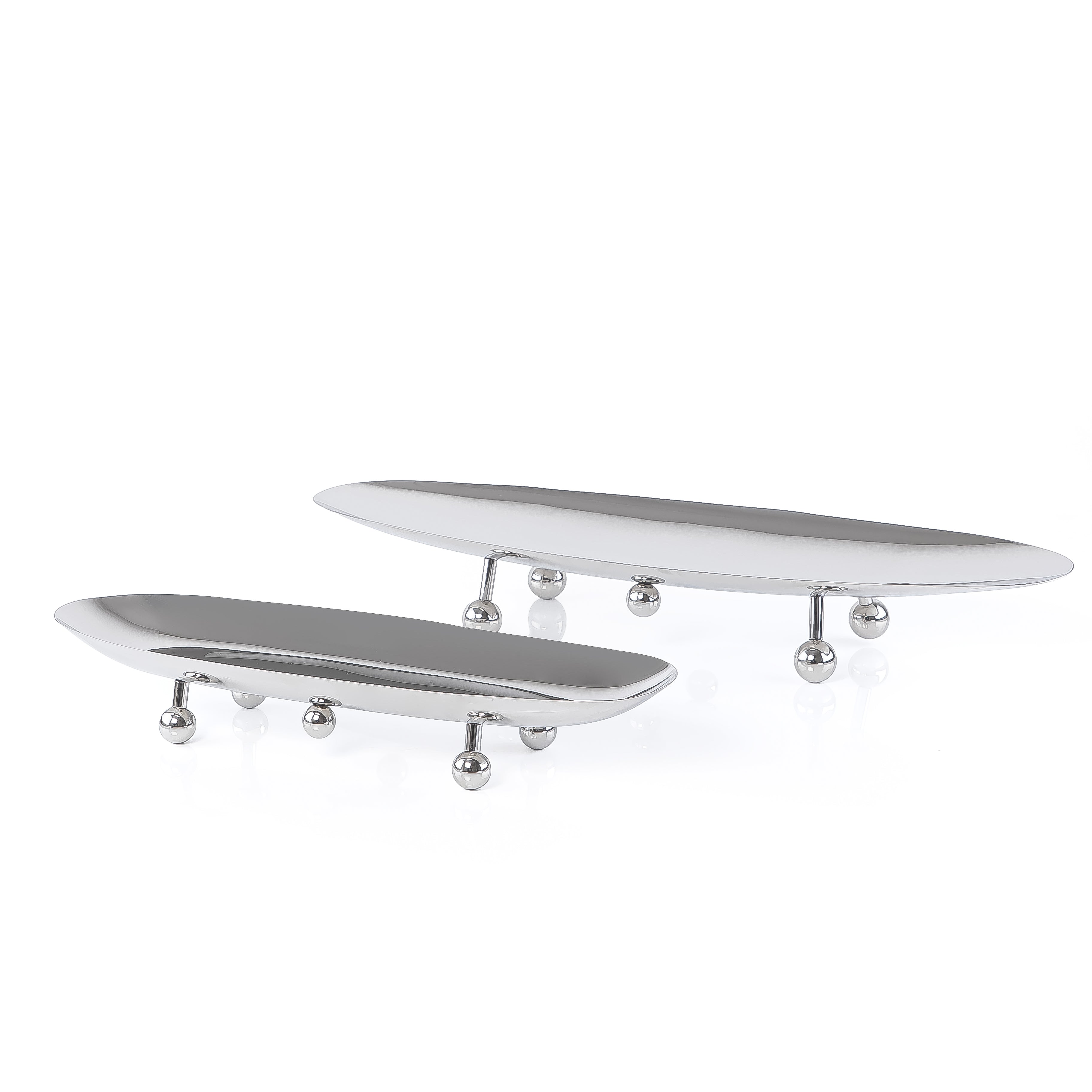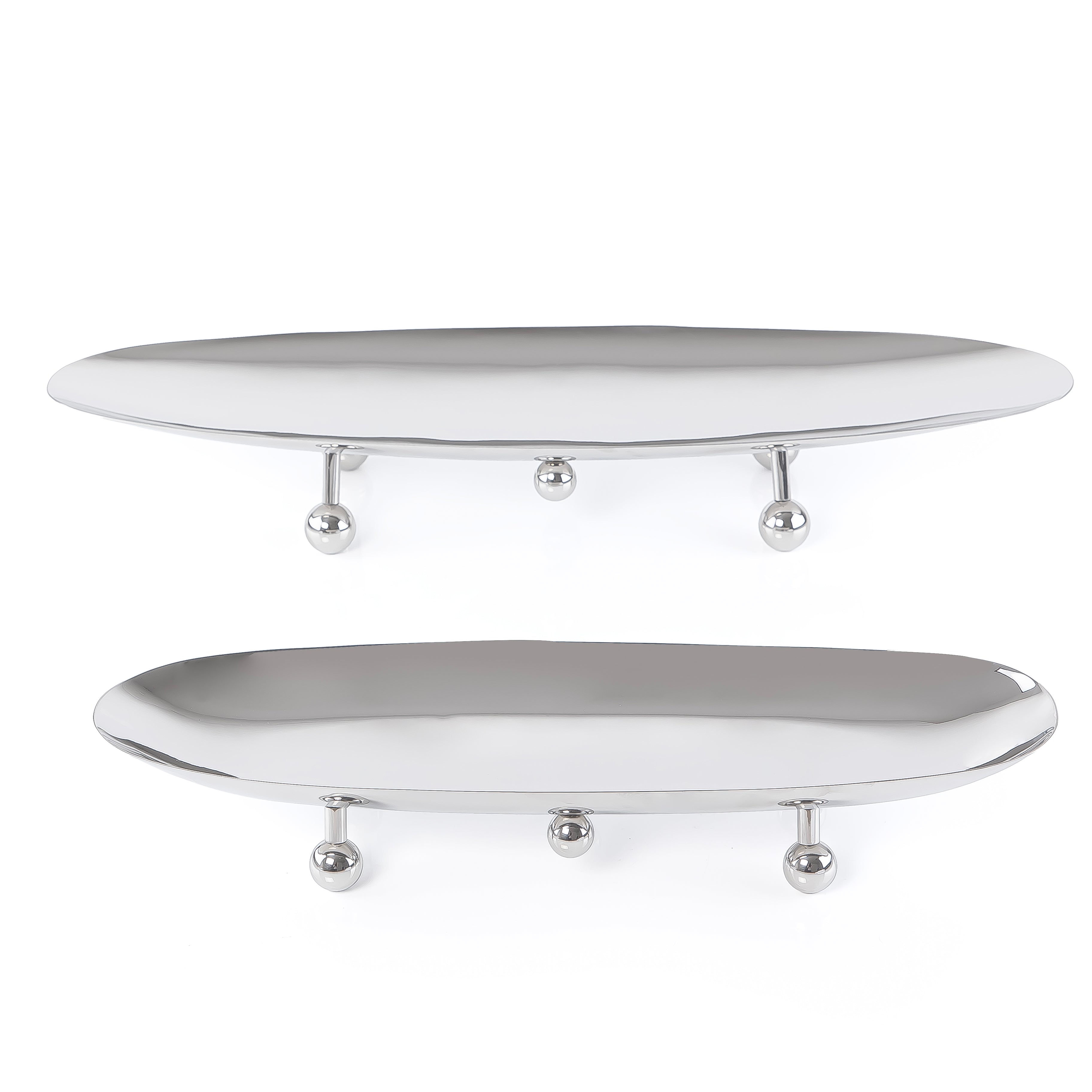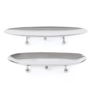 طقم مكون من 2 ستاند تقديم بيضاوي معدن مع بوكس هدايا - فضي