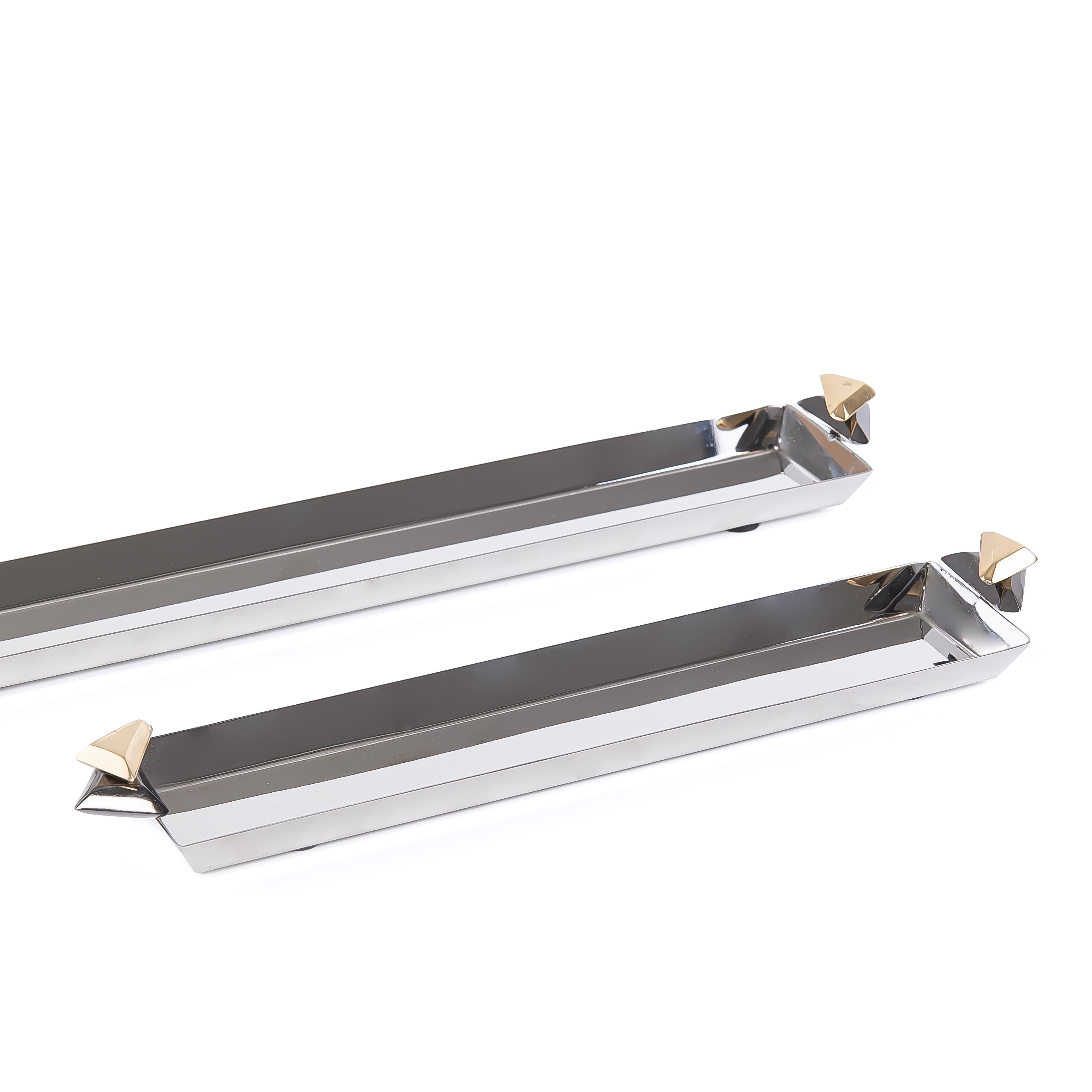 طقم مكون من 2 صينية معدن طويلة للتقديم مع بوكس هدايا - فضي & أسود