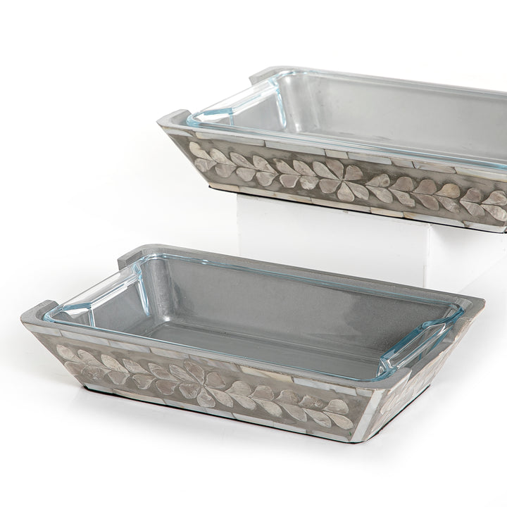 طقم أطباق زجاجي مستطيل بقاعدة من عرق اللؤلؤ