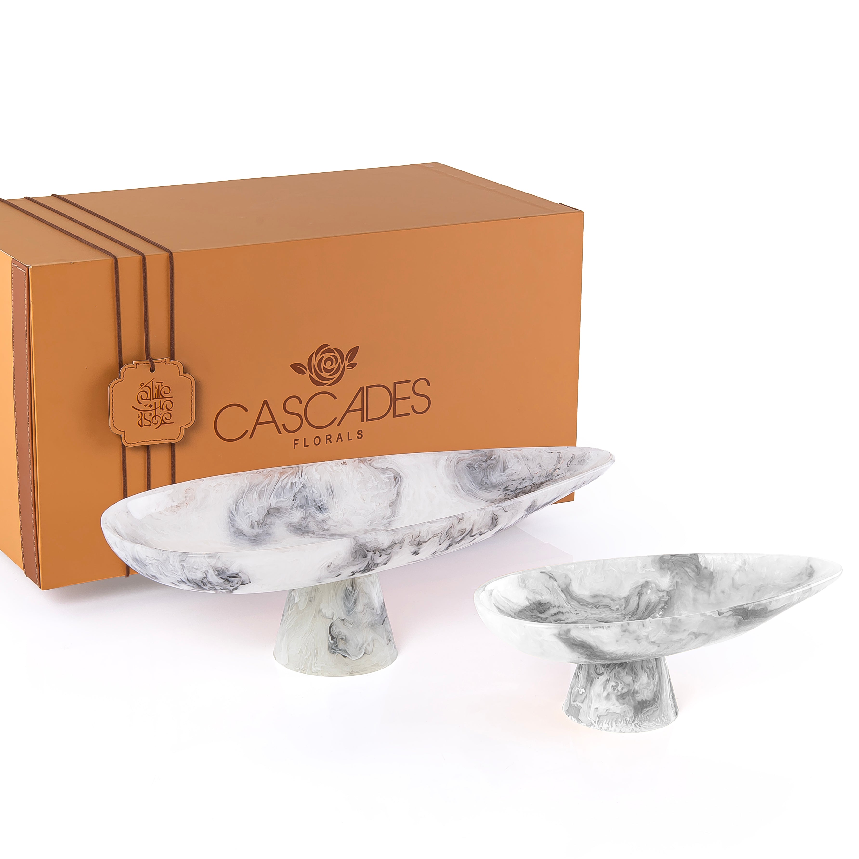 طقم 2 ستاند تقديم من الراتنج مع بوكس هدايا - أبيض & أسود