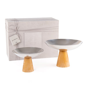 طقم 2 طبق تقديم دائري من الستانلس ستيل مع قاعدة من الريزن بتصميم مخروطي عريض وبوكس هدية