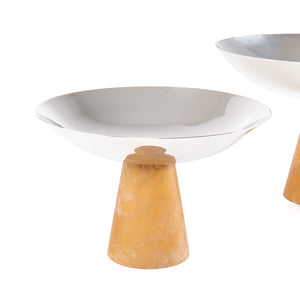 Chose the option: طقم 2 طبق تقديم دائري من الستانلس ستيل مع قاعدة من الريزن بتصميم مخروطي عريض وبوكس هدية