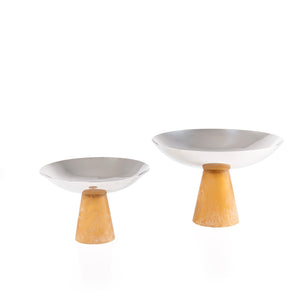 طقم 2 طبق تقديم دائري من الستانلس ستيل مع قاعدة من الريزن بتصميم مخروطي وبوكس هدية - ابيض