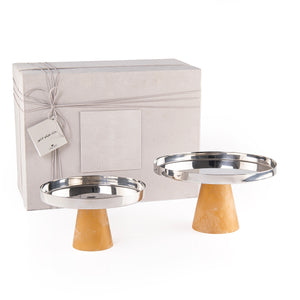 طقم مكون من 2 طبق تقديم دائري مصنوع من الستانلس ستيل، مع قاعدة من الريزن بتصميم مخروطي، ويأتي مع بوكس هدية.