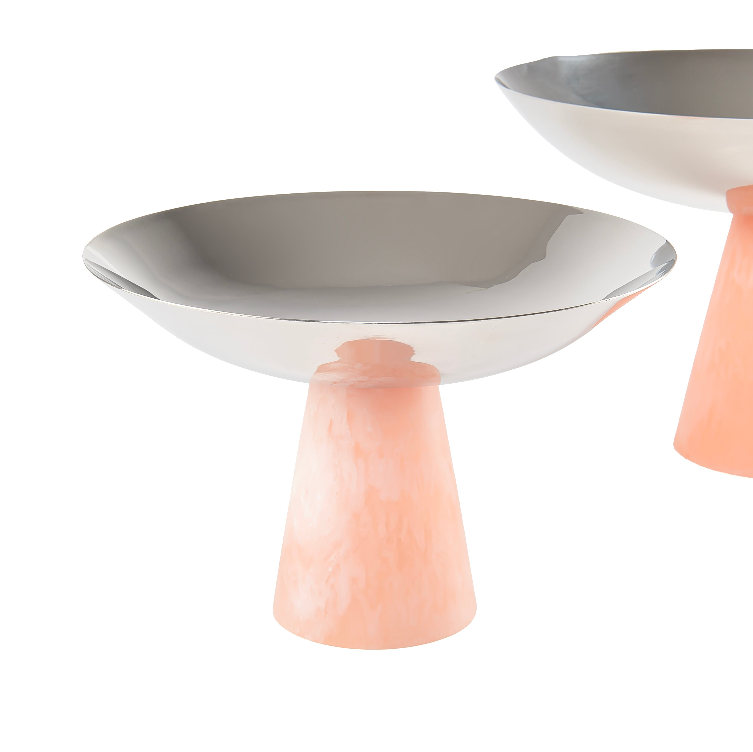 طقم فاخر من طبقين للتقديم مصنوعين من الستانلس ستيل على قاعدة مخروطية من الراتنج
