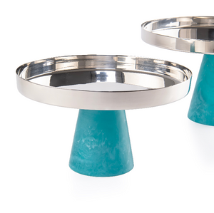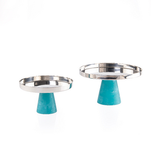 طقم فاخر من طبقين للتقديم مصنوعين من الستانلس ستيل على قاعدة مخروطية من الراتنج