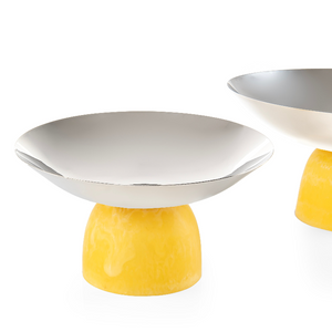 طقم من 2 ستاند للتقديم من الإستانلس ستيل، مع قاعدة من الراتنج - أصفر