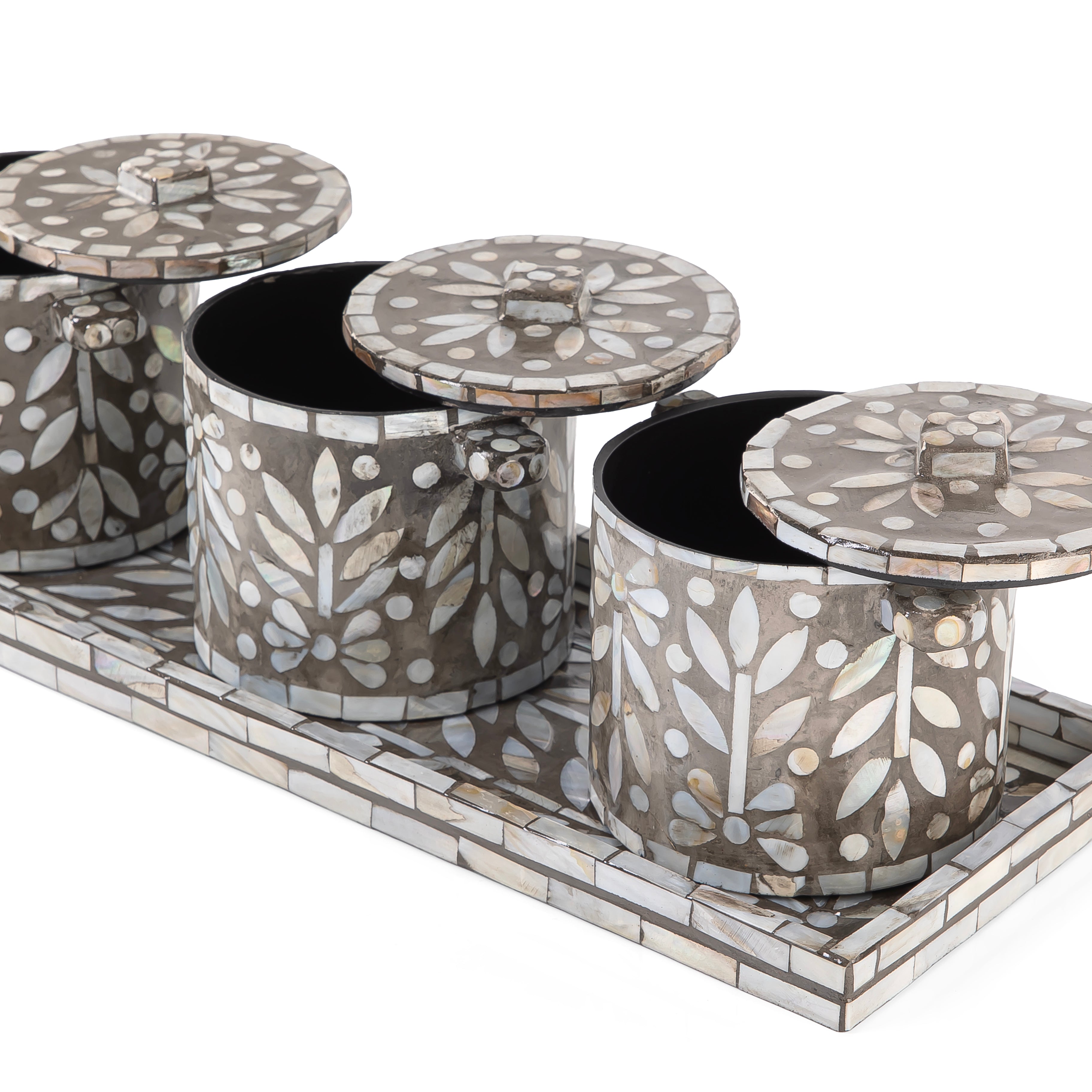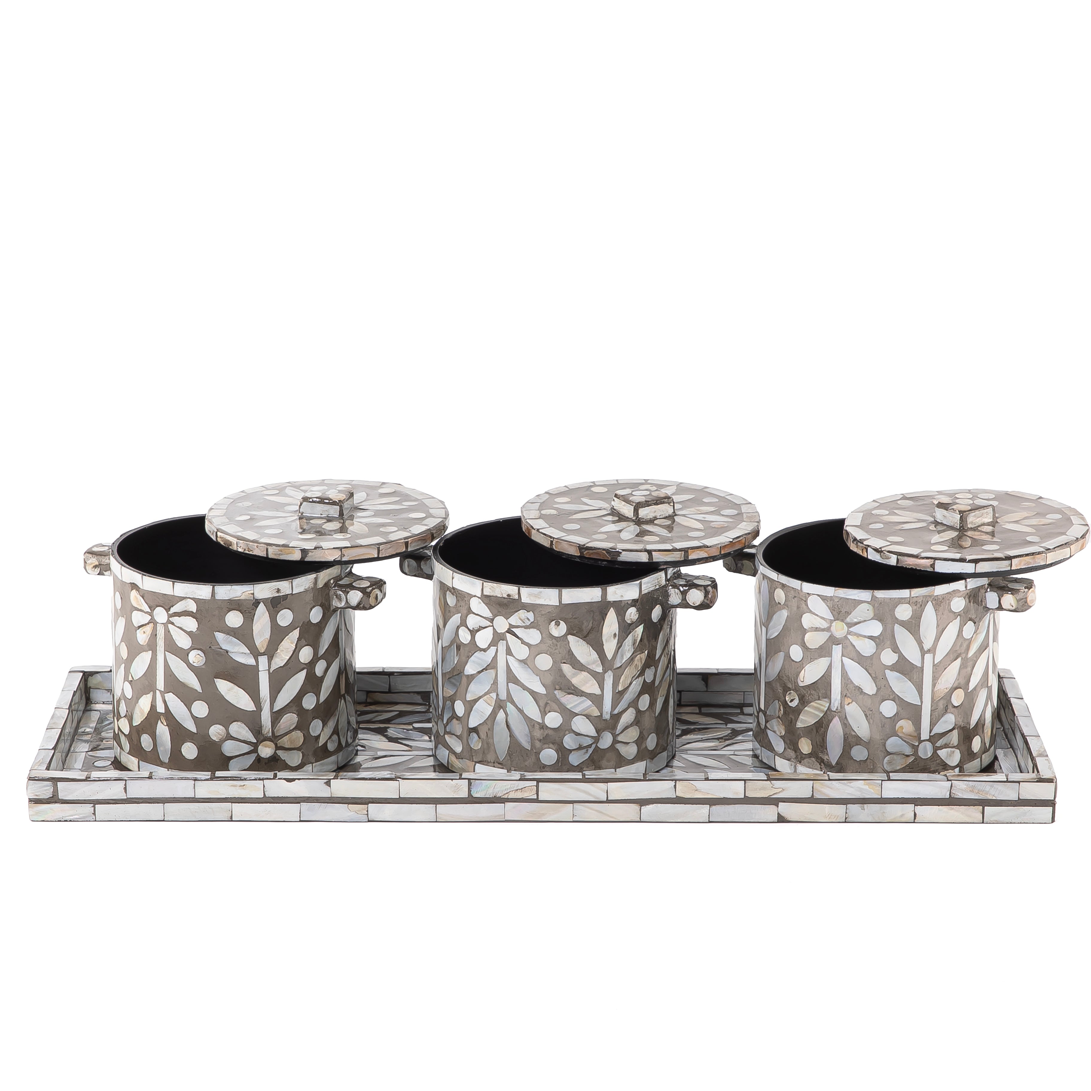 طقم من 3 جار + صينية من الصدف مع بوكس هدايا