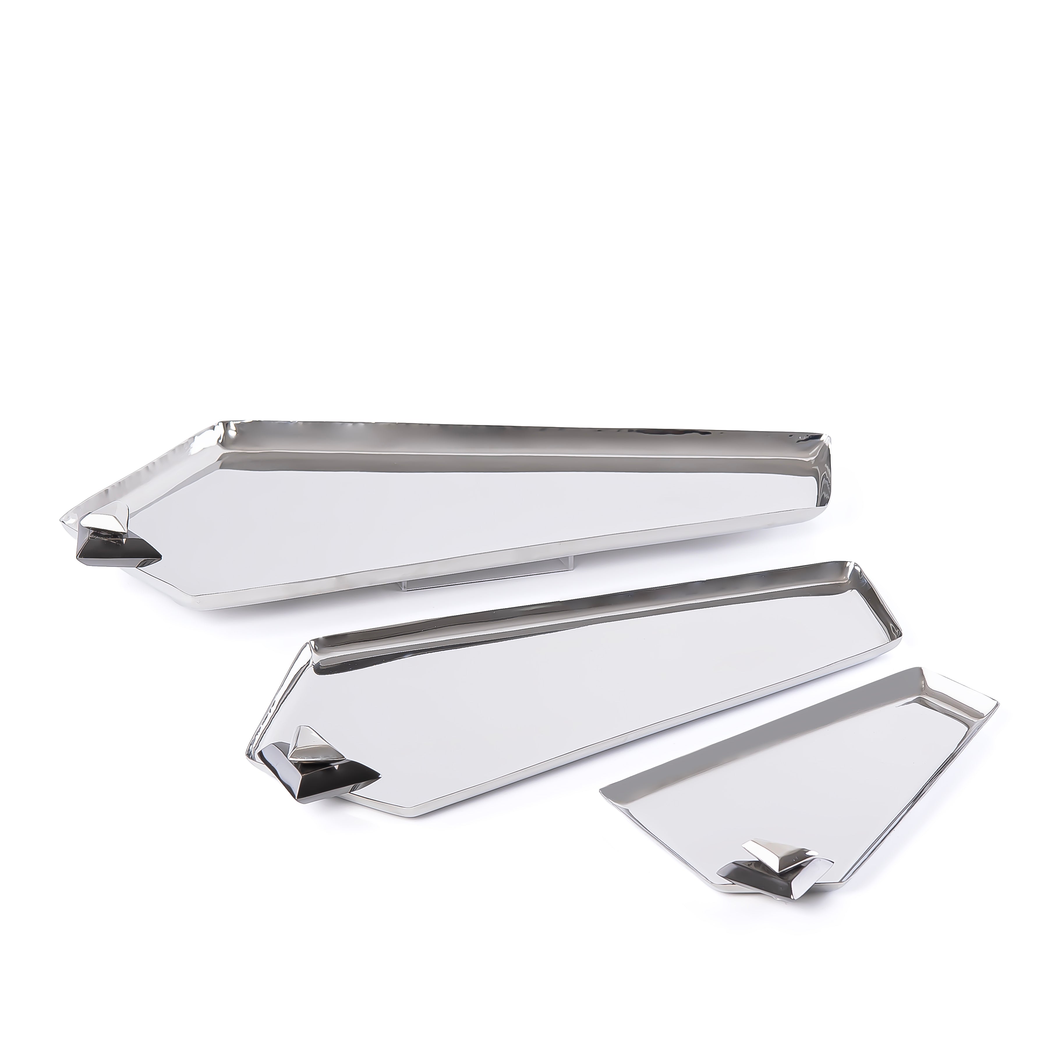 طقم مكون من 3 صواني معدنية مع بوكس هدايا - فضي & أسود