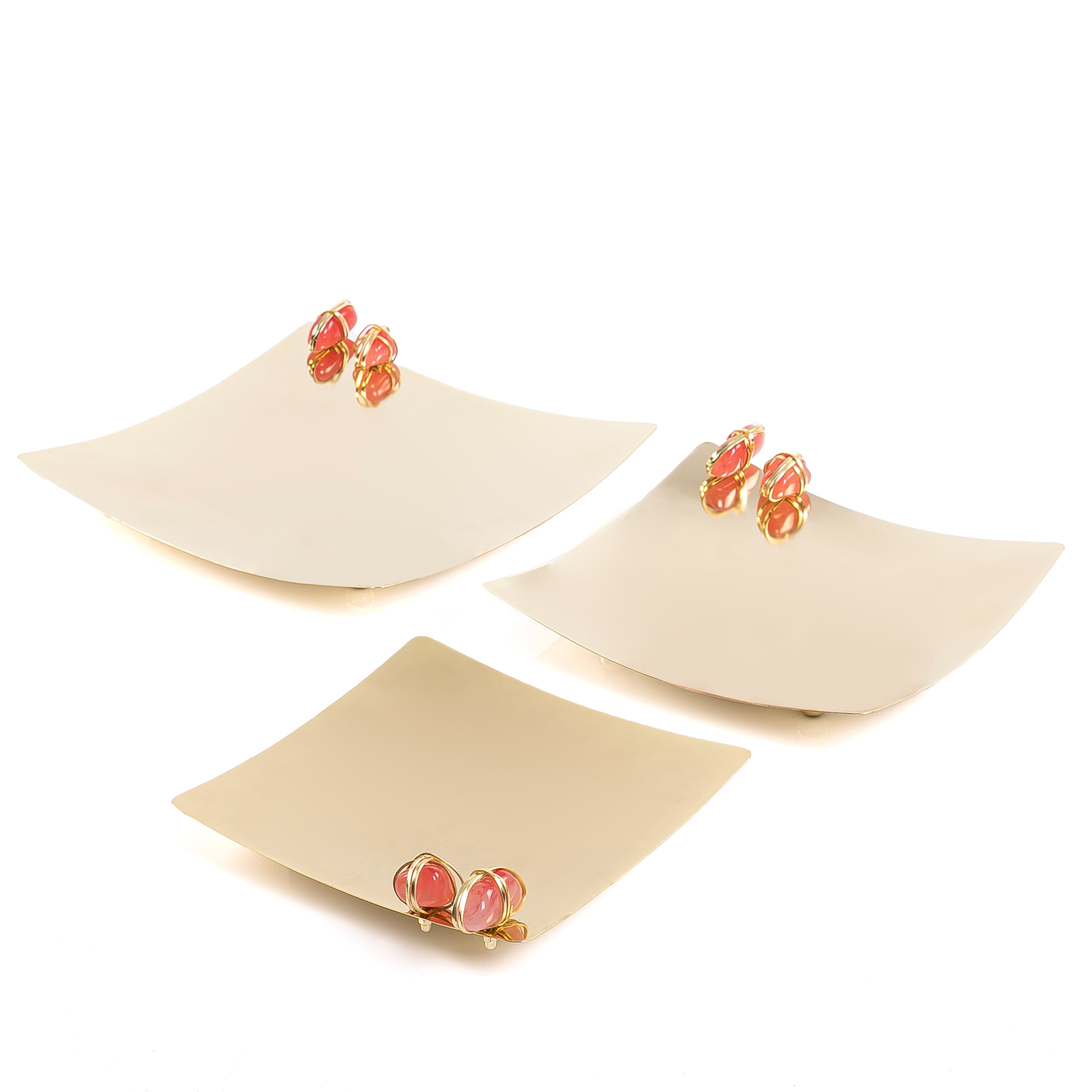 لا غنى عنها في أي منزل. صُنعت هذه الاطباق من المعدن ، وهي مثالية لتقديم الوجبات الخفيفة والمشروبات، وتنظيم الإكسسوارات، أو عرض القطع الزخرفية. يُضفي تصميمها الأنيق وزخاوبات، وتنظيم الإكسسوارات، أو عرض القطع الزخرفية. يُضفي تصميمها الأنيق وزخارفها الحجرية لمسة من الأناقة، مما يجعلها إضافة رائعة لأي غرفة.كما تأتي في علبة هدايا أنيقة تُناسب جميع الأذواق.