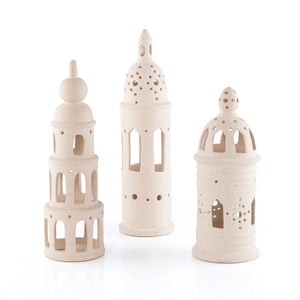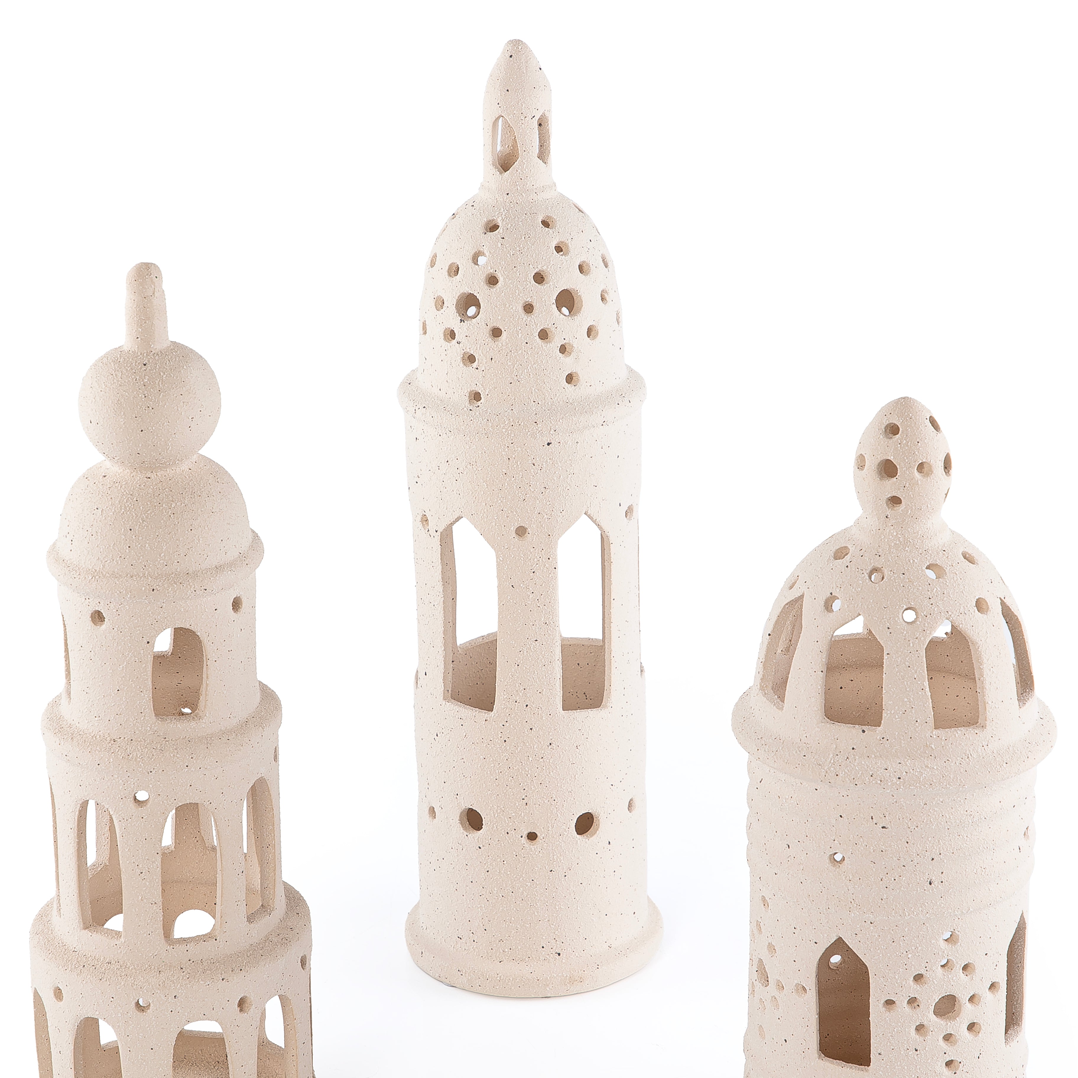 يضم هذا الطقم الأنيق ثلاث قطع ديكور فخارية بتصاميم تجمع بين الأشكال الدائرية والمآذن، مما يضفي لمسة فاخرة وراقية على أي مساحة. تتميز كل قطعة بجودة صنع عالية ومميزة، مما يجعلها مثالية لغرف المعيشة والمداخل والمكاتب، أو لتقديمها كهدية مميزة.