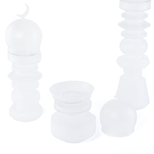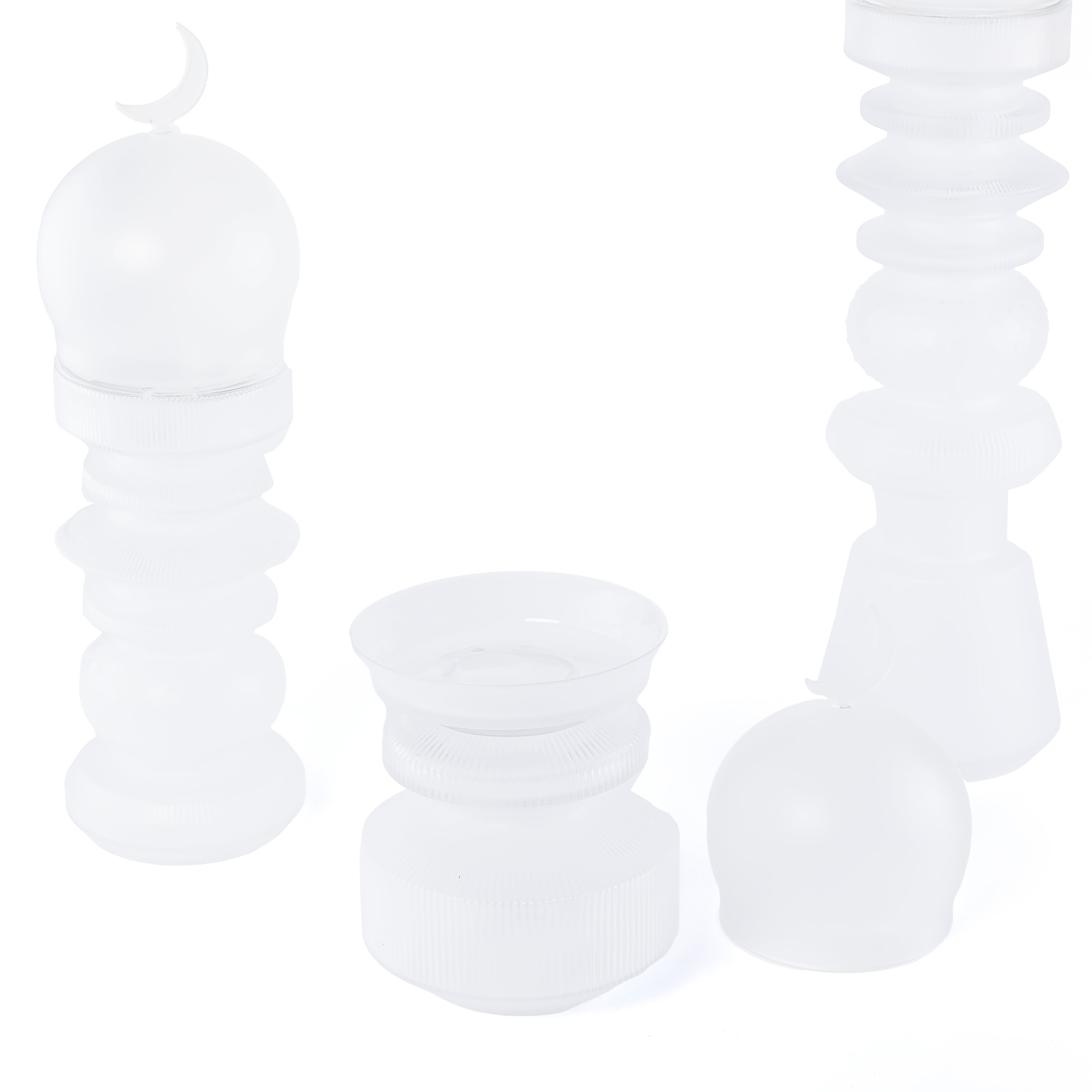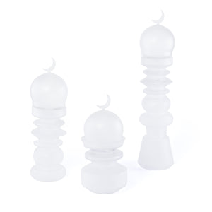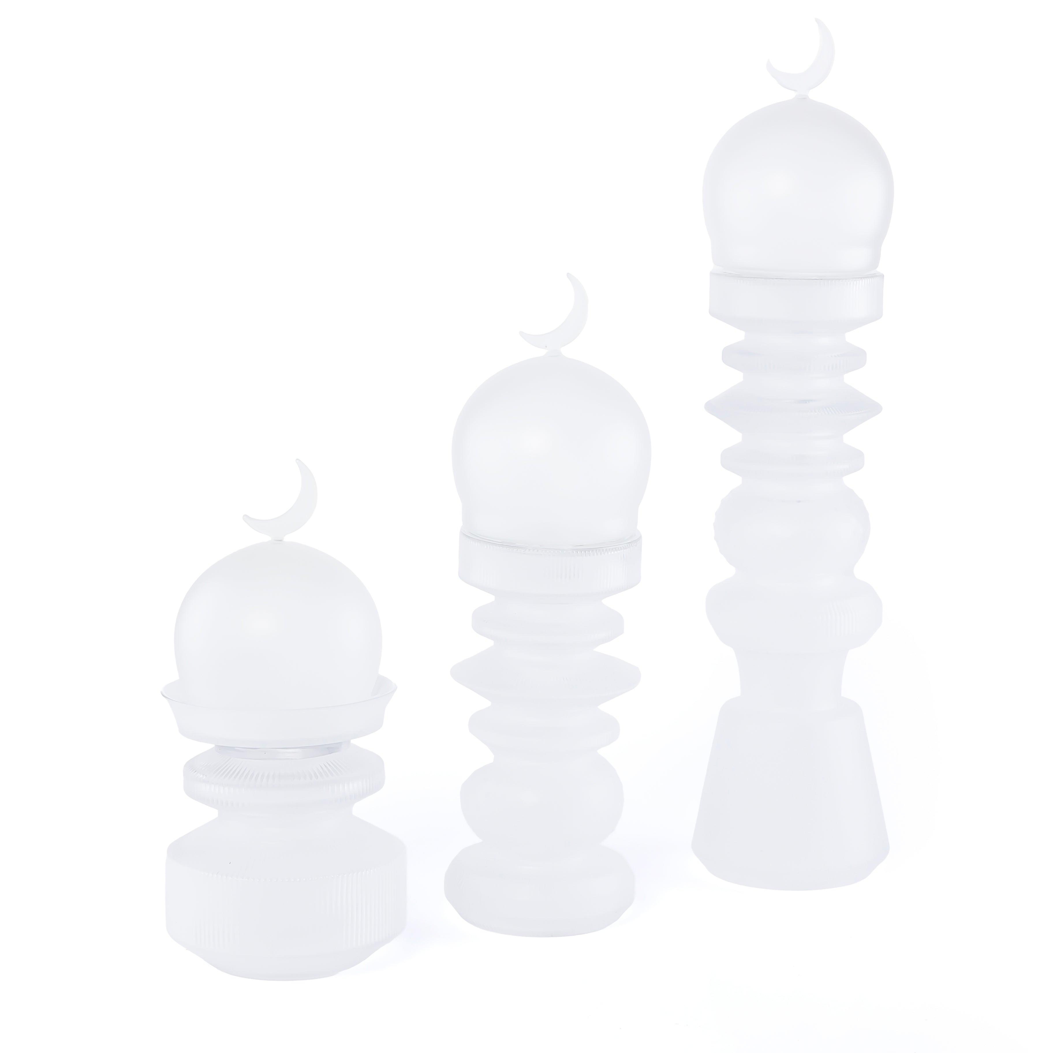 طقم زجاجي 3 قطع (2 قطعة ديكورعلى شكل مأذنة + وعاء للتمر) مع بوكس هدايا - أبيض