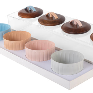 Home طقم من 4 قطع من الأواني الفخارية الصغيرة الملونة مع صينية