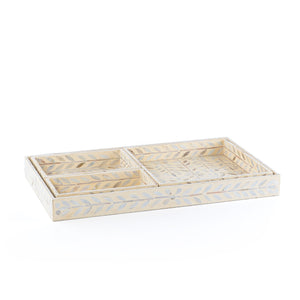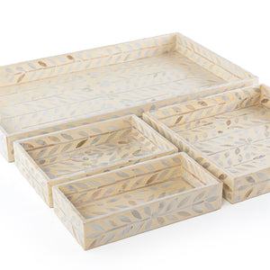 ارتقِ بتنظيم منزلك مع طقم صواني من الصدف الأنيق هذا. يتميز بأربعة أحجام متدرجة باللون البيج الأنيق، كل قطعة تُبرز اللمسة النهائية اللامعة والمتلألئة التي تُميز عرق اللؤلؤ الفاخر. مثالية لعرض المجوهرات، أو تنظيم مستلزمات المكتب، أو تقديم المرطبات، تجمع هذه الصواني متعددة الاستخدامات بين العملية والجماليات الراقية. تضمن الاختلافات الطبيعية في سطح كل صينية اللؤلؤي جمال كل طقم بشكل فريد. إضافة مثالية للديكورات الداخلية العصرية أو التقليدية التي تبحث عن فخامة غير مبالغ فيها.