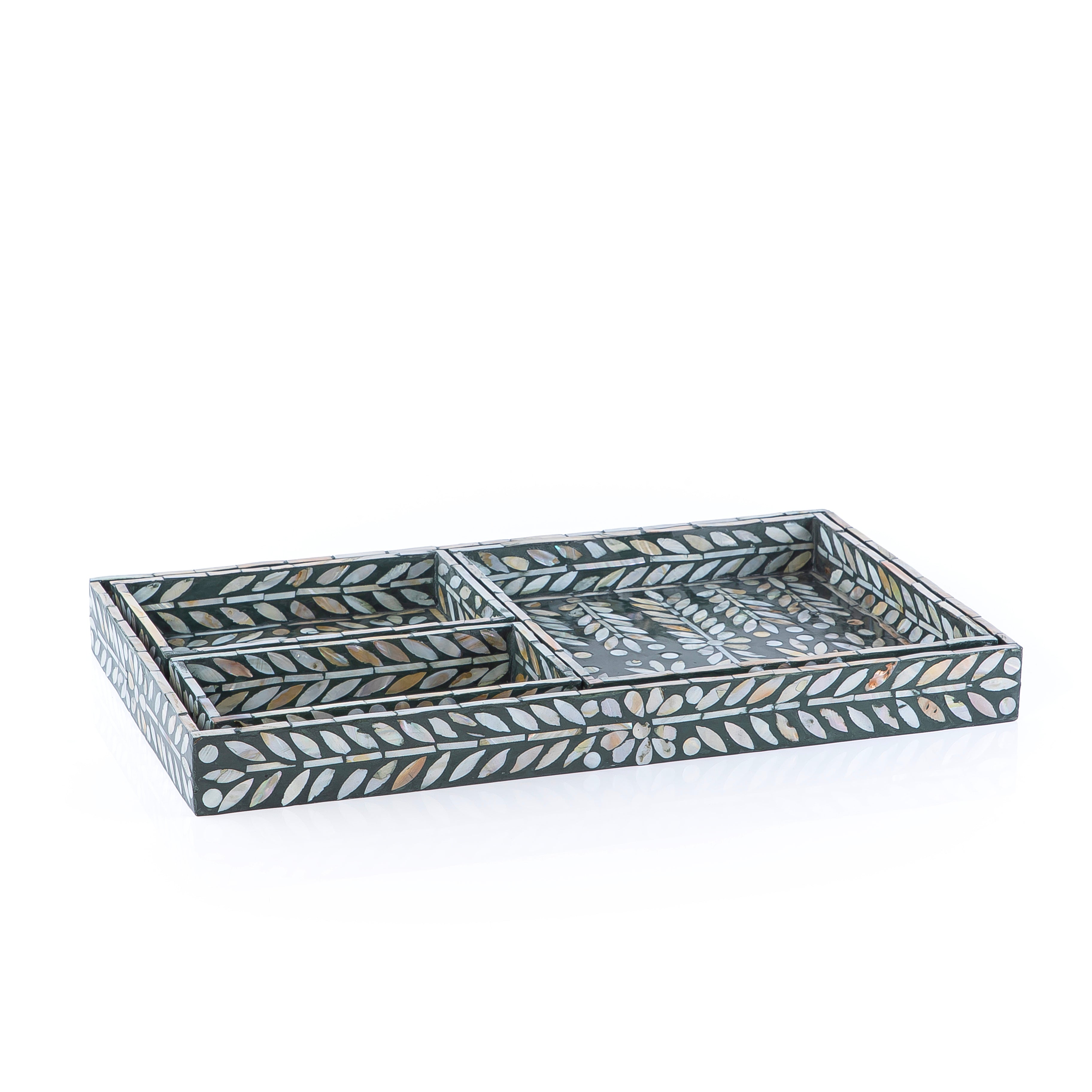 ارتقِ بتنظيم منزلك مع طقم صواني الصدف الأنيق هذا. يتميز بأربعة أحجام متدرجة باللون الاخضر الأنيق، كل قطعة تُبرز اللمسة النهائية اللامعة والمتلألئة التي تُميز عرق اللؤلؤ الفاخر. مثالية لعرض المجوهرات، أو تنظيم مستلزمات المكتب، أو تقديم المرطبات، تجمع هذه الصواني متعددة الاستخدامات بين العملية والجماليات الراقية. تضمن الاختلافات الطبيعية في سطح كل صينية اللؤلؤي جمال كل طقم بشكل فريد. إضافة مثالية للديكورات الداخلية العصرية أو التقليدية التي تبحث عن فخامة غير مبالغ فيها.