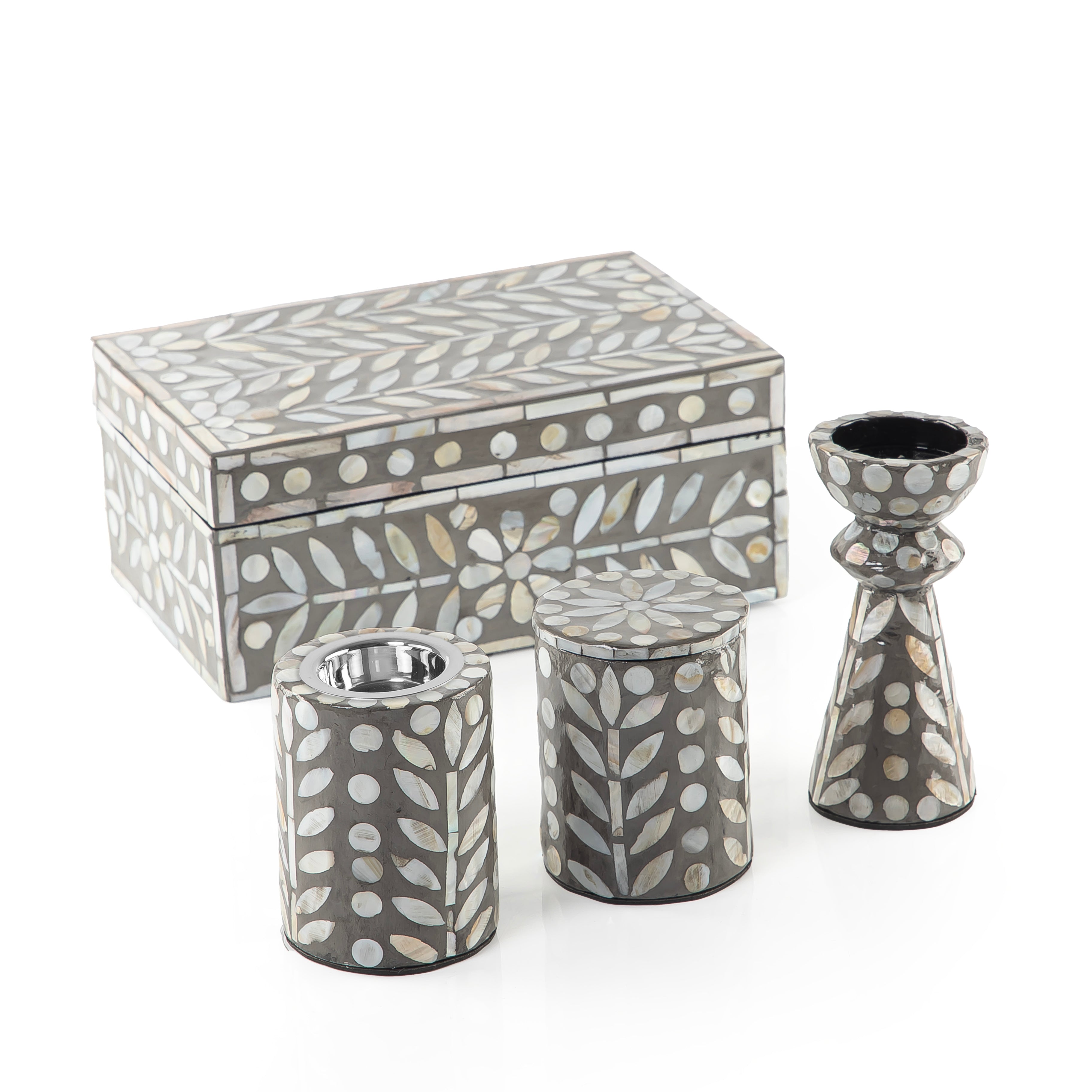 طقم صدف (مبخر + علبة بخور + حامل شموع ) في بوكس - رمادي