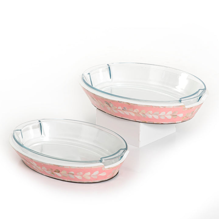 طقم 2 طبق زجاجي بيضاوي بقاعدة من الصدف - كبير