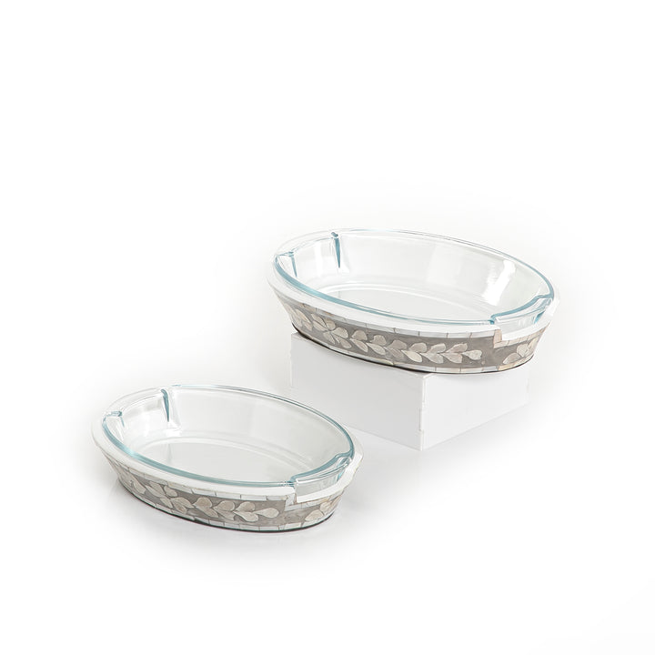 طقم 2 طبق زجاجي بيضاوي بقاعدة من الصدف - حجم صغير