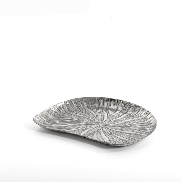 طبق معدن أنيق باللون الفضي، مثالي للتقديم أو التزيين . يتميز بتشطيب ناعم ولمعان راقٍ يضفي لمسة عصرية على أي مساحة، مناسب للاستخدام اليومي والمناسبات الخاصة.