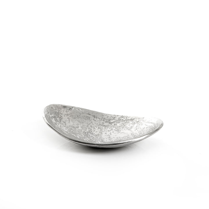 صحن معدني بيضاوي أنيق باللون الفضي، مثالي للتقديم أو التزيين أو ترتيب الأدوات الصغيرة. يتميز بتشطيب ناعم ولمعان راقٍ يضفي لمسة عصرية على أي مساحة، مناسب للاستخدام اليومي والمناسبات الخاصة.