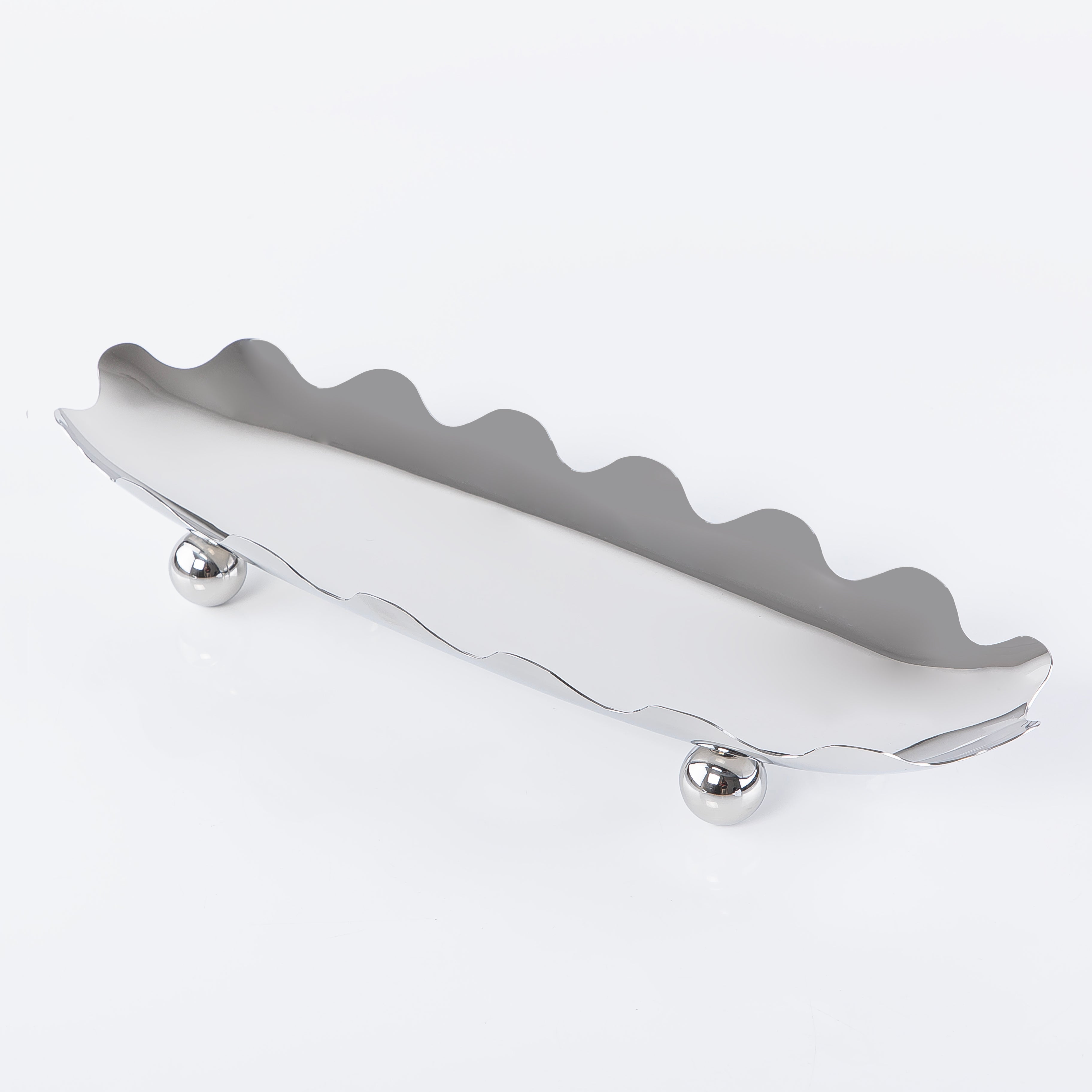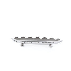 ستاند للتقديم معدن بيضاوي بحواف متعرجة - فضي صغير