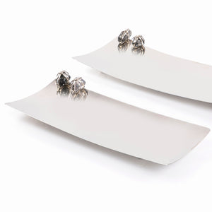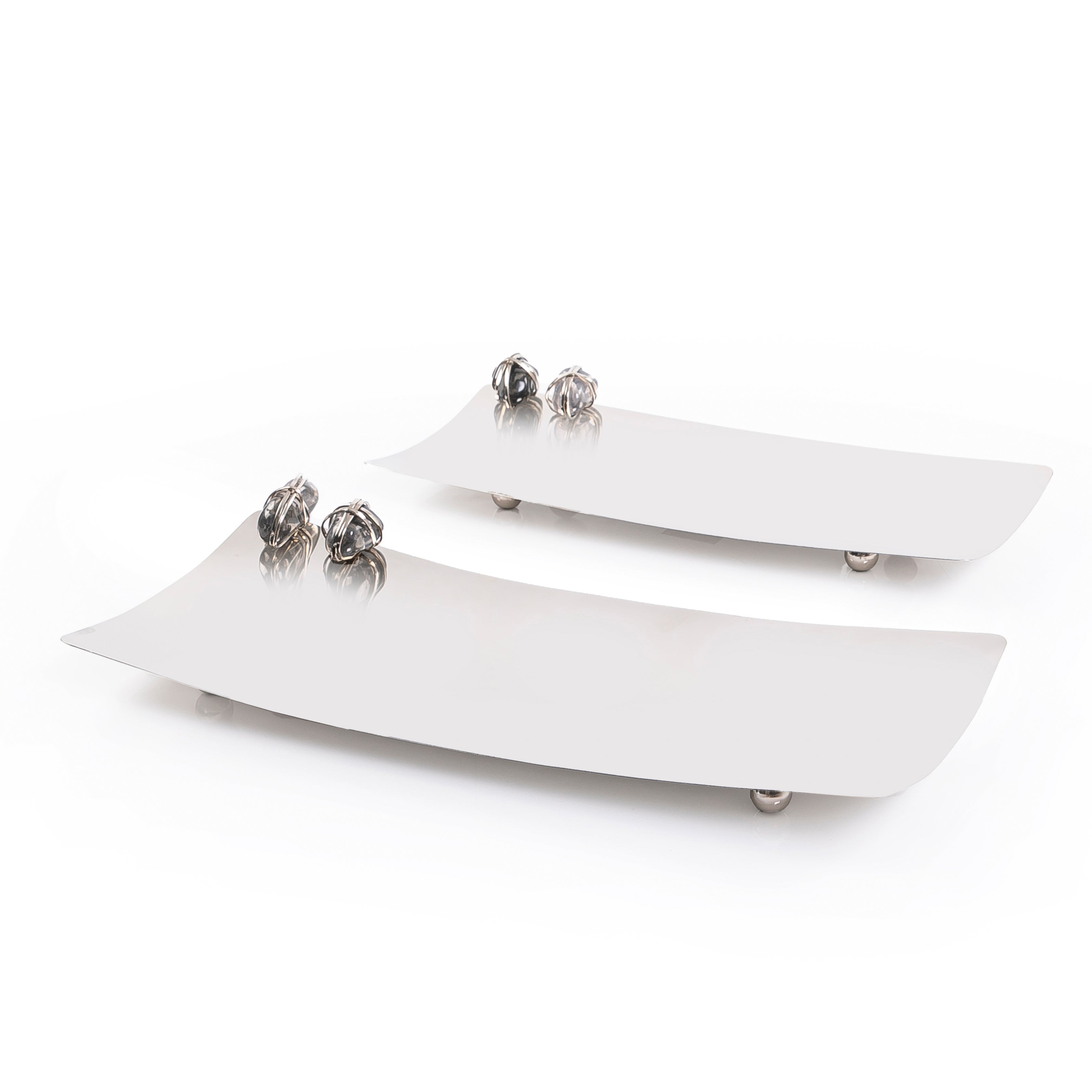 لا غنى عنها في أي منزل. صُنعت هذه الاطباق من المعدن ، وهي مثالية لتقديم الوجبات الخفيفة والمشروبات، وتنظيم الإكسسوارات، أو عرض القطع الزخرفية. يُضفي تصميمها الأنيق وزخاوبات، وتنظيم الإكسسوارات، أو عرض القطع الزخرفية. يُضفي تصميمها الأنيق وزخارفها الحجرية لمسة من الأناقة، مما يجعلها إضافة رائعة لأي غرفة.كما تأتي في علبة هدايا أنيقة تُناسب جميع الأذواق.