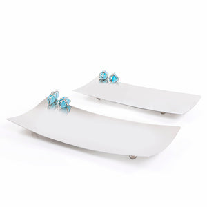 لا غنى عنها في أي منزل. صُنعت هذه الاطباق من المعدن ، وهي مثالية لتقديم الوجبات الخفيفة والمشروبات، وتنظيم الإكسسوارات، أو عرض القطع الزخرفية. يُضفي تصميمها الأنيق وزخاوبات، وتنظيم الإكسسوارات، أو عرض القطع الزخرفية. يُضفي تصميمها الأنيق وزخارفها الحجرية لمسة من الأناقة، مما يجعلها إضافة رائعة لأي غرفة.كما تأتي في علبة هدايا أنيقة تُناسب جميع الأذواق.