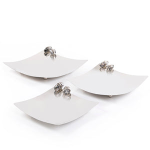 لا غنى عنها في أي منزل. صُنعت هذه الاطباق من المعدن ، وهي مثالية لتقديم الوجبات الخفيفة والمشروبات، وتنظيم الإكسسوارات، أو عرض القطع الزخرفية. يُضفي تصميمها الأنيق وزخاوبات، وتنظيم الإكسسوارات، أو عرض القطع الزخرفية. يُضفي تصميمها الأنيق وزخارفها الحجرية لمسة من الأناقة، مما يجعلها إضافة رائعة لأي غرفة.كما تأتي في علبة هدايا أنيقة تُناسب جميع الأذواق.
