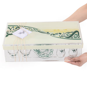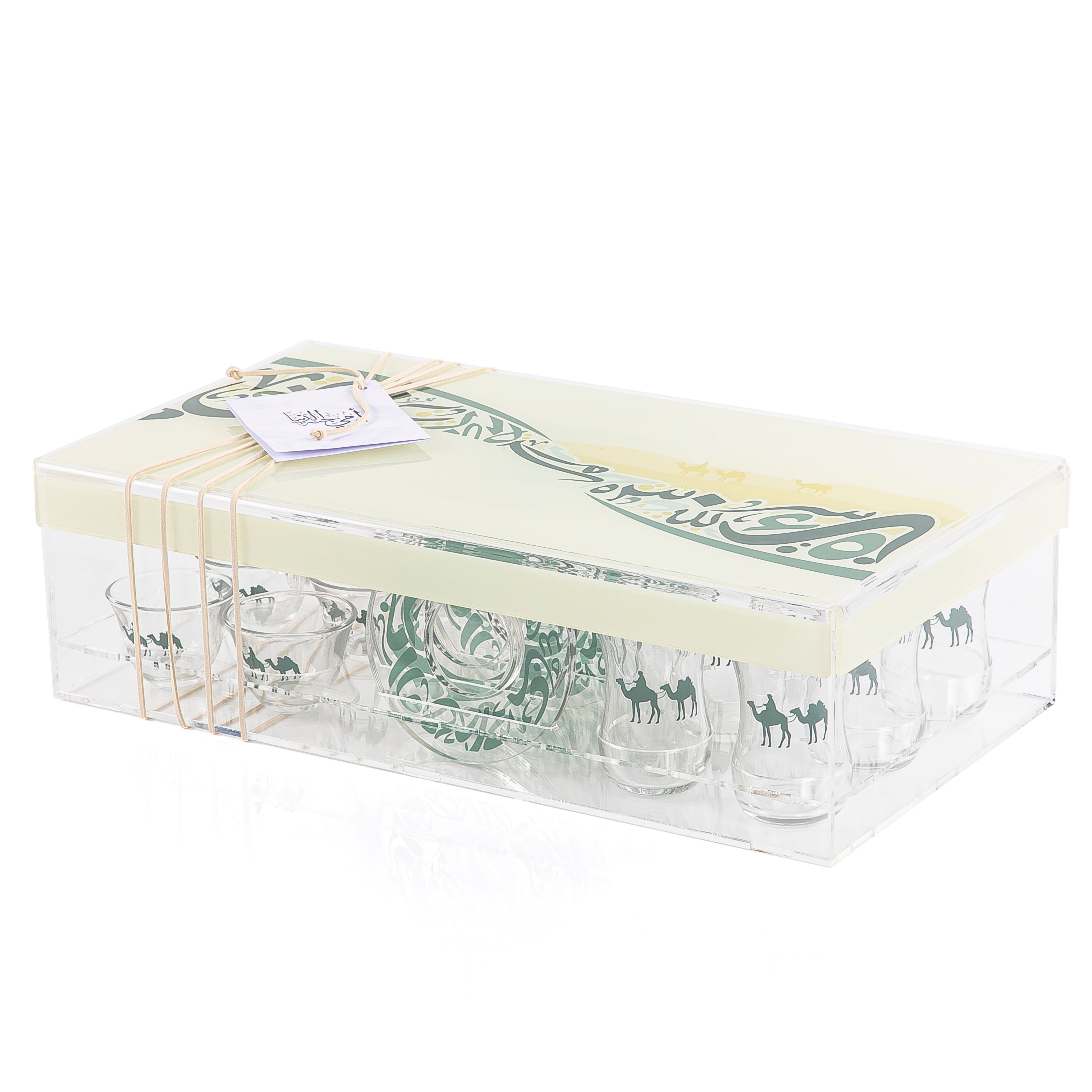 يتميز هذا الصندوق الأكريليكي الشفاف بغطاء أنيق بتصميم مطبوع عليه أشعة فوق البنفسجية باللونين البيج والبني. يحتوي على: