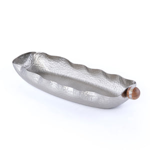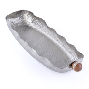 طبق تقديم بيضاوي معدن بمقابض خشبية - كبير