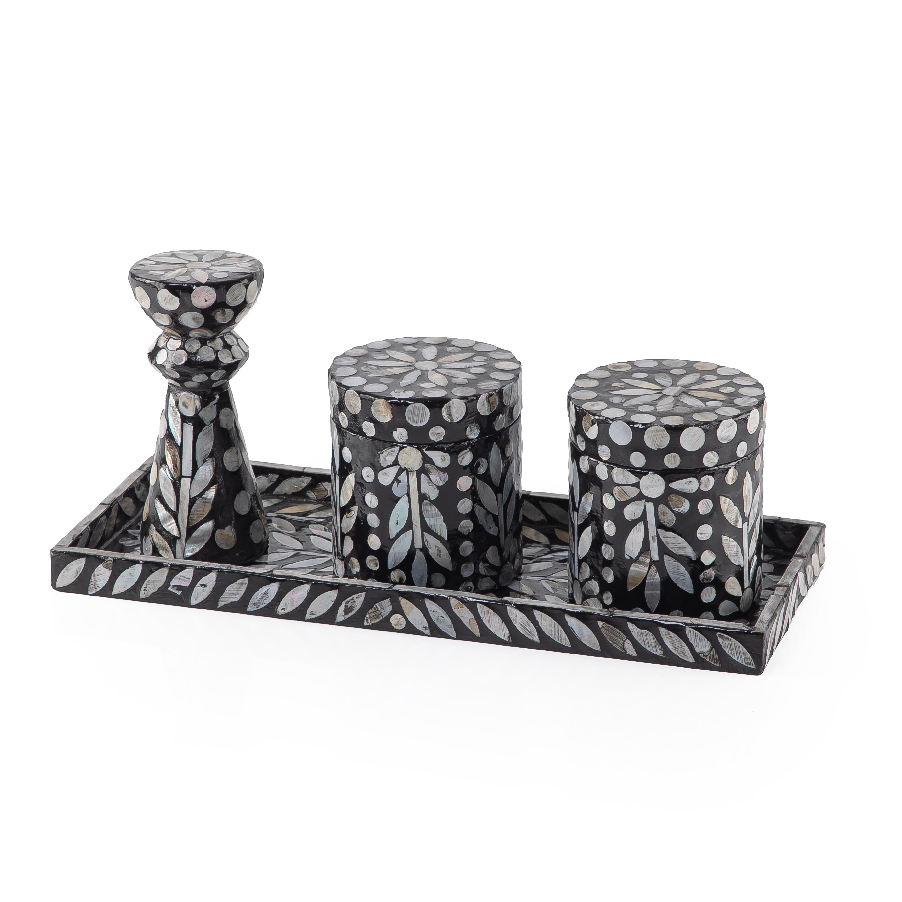 طقم صدف (2 جار، قطعة ديكور، صينية) - أسود