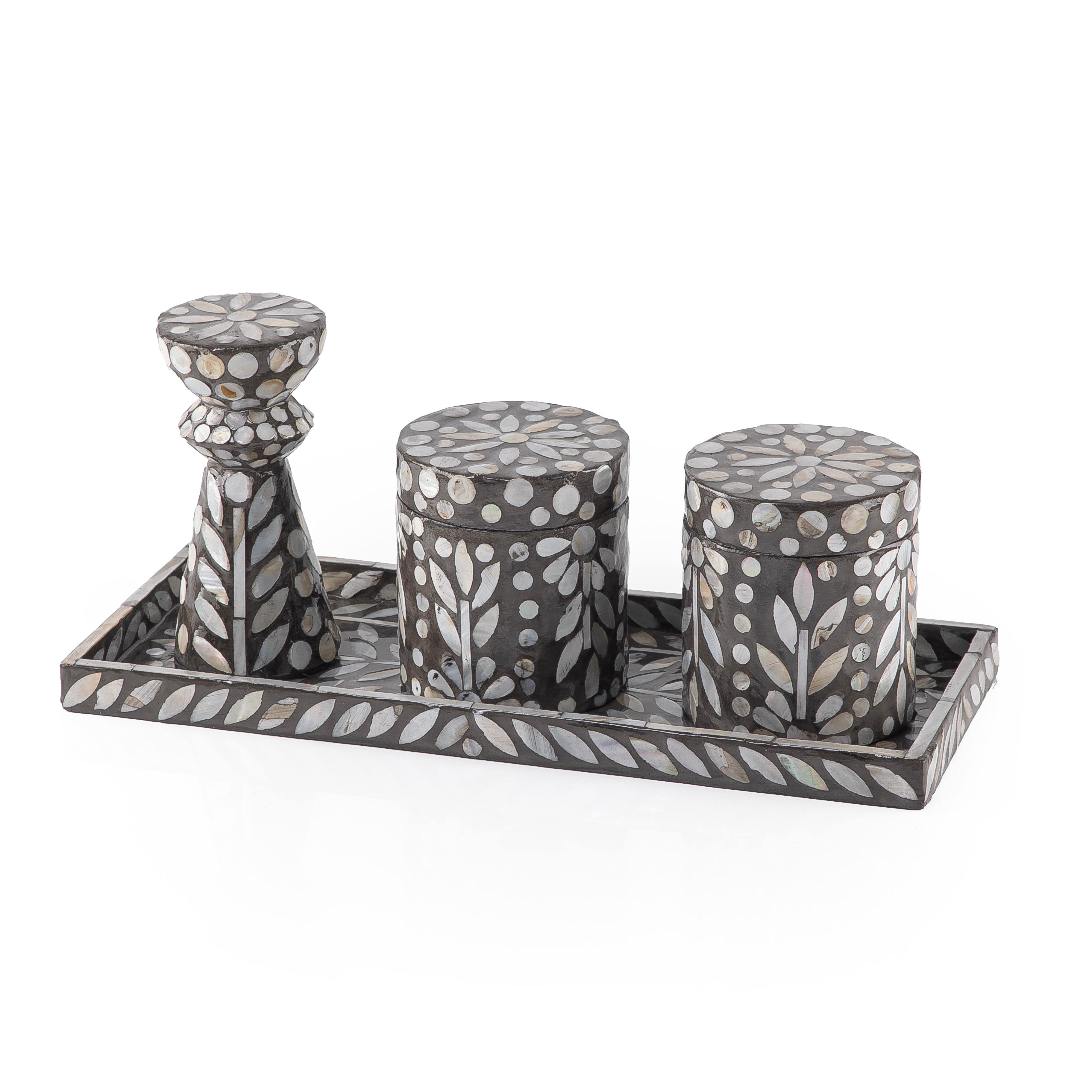 طقم صدف (2 جار، قطعة ديكور، صينية) - رمادي